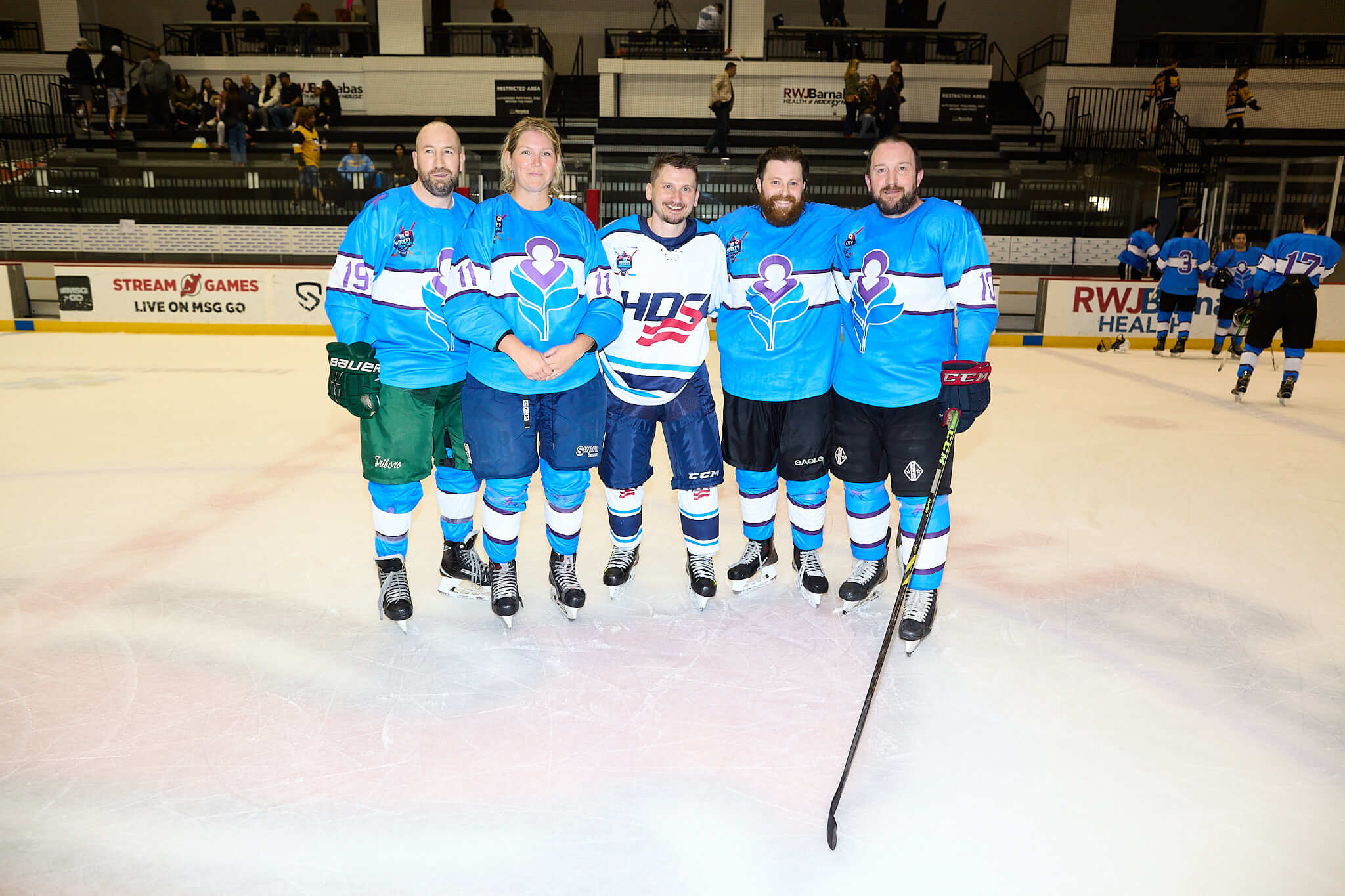 The puck dropped during HD Awareness Month at RWJBarnabas Health Hockey House in Newark, New Jersey – Home of the New Jersey Devils!  This fun-filled event for the entire family included: intermission contests, entertainment, raffles, player meet & greets, special guests and much more!